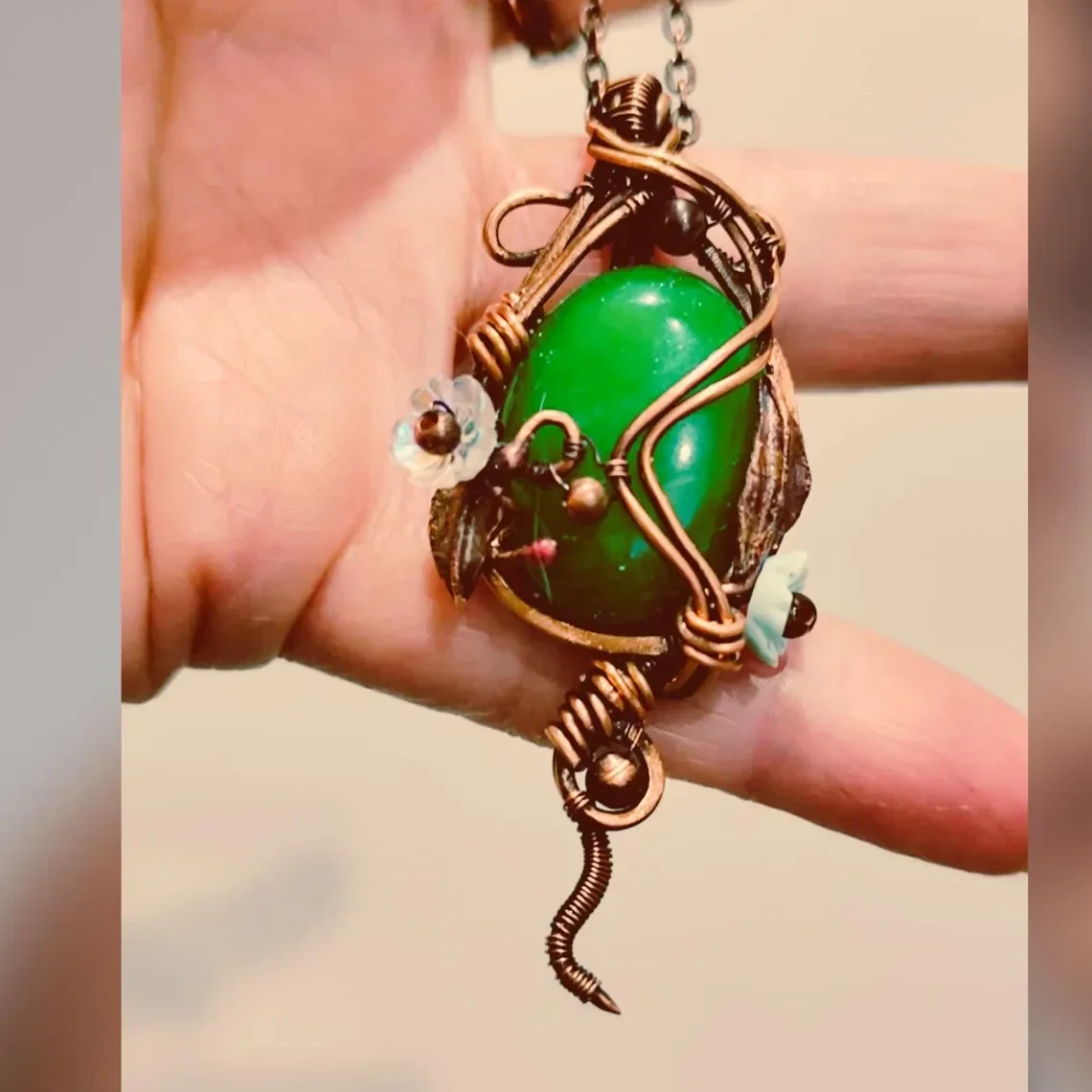 Handgemachte Kupfer Halskette, Grüner Achat, Kristall Blumen